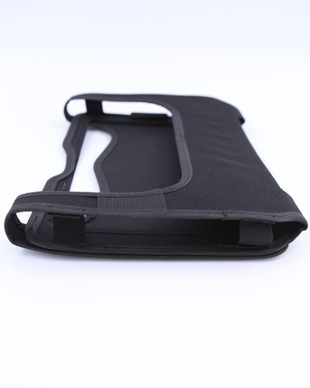 Die magnetische Displayabdeckung kann auch als Lenkradhalterung verwendet werden. Während des Stehens kann die Schutzhülle aufgeklappt im Lenkrad eingehängt werden. Dies ermöglicht Ihnen mit beiden Händen am Tablet-PC frei zu arbeiten.