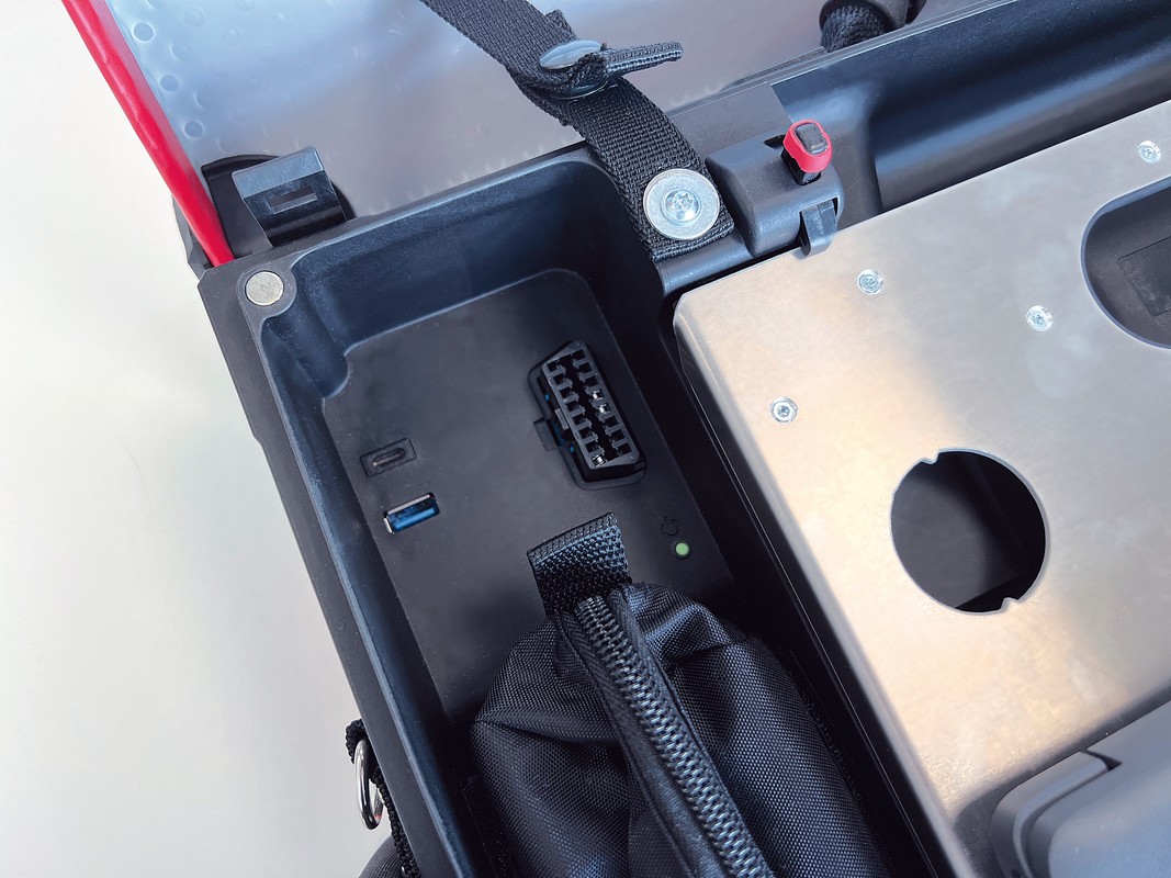 - Option 2: 1 x USB Typ A Ladebuchse, 1 x USB Typ C Ladebuchse, 1 x ODB2 Ladebuchse
